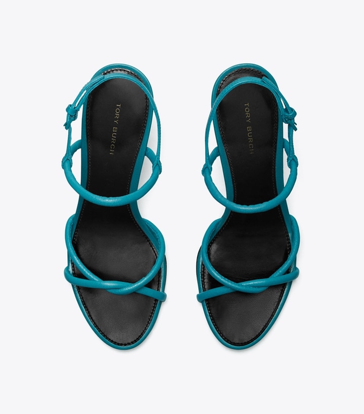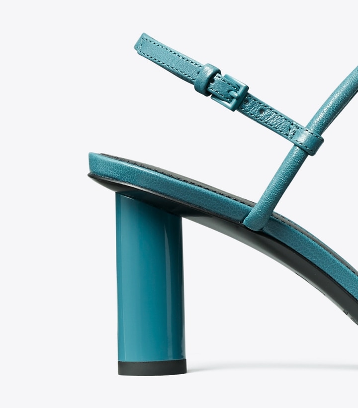A minimalist sandal with subtle details. Delicate tubular leather straps flatter the foot, while a cylindrical metallic heel adds an unexpected element. Dress it up or down with the season's dresses and denim.