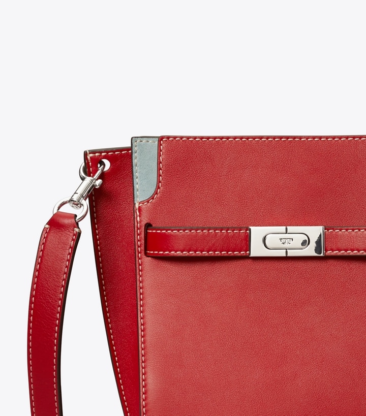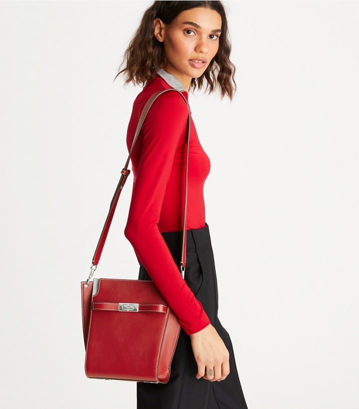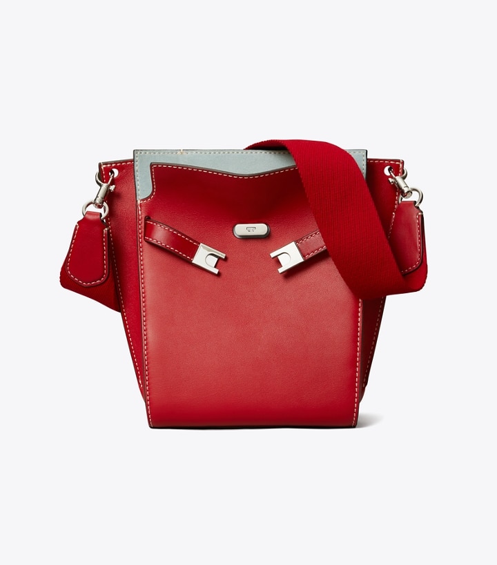 Another side of Lee Radziwill. Unprecious, relaxed, sporty. The new Lee Radziwill Double Bucket Bag is composed of softly structured layers with a slim profile, scaled for freedom of movement and worn crossbody. A singular mix of luxury and casual utility. Beautifully crafted in leather and suede, with a belt closure clasped by lock-and-key hardware. The collection is named for Lee, who was fearlessly unique.