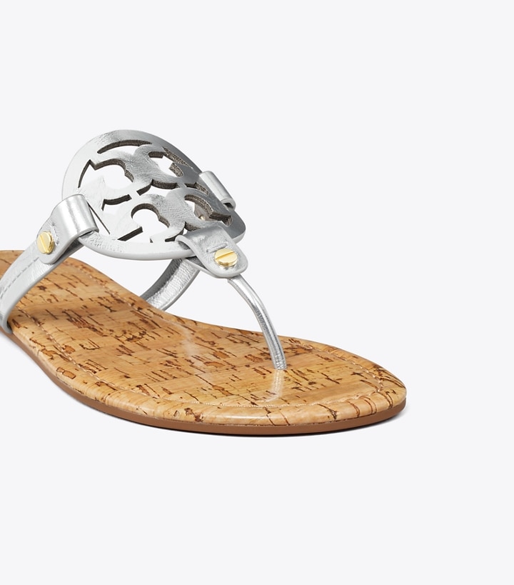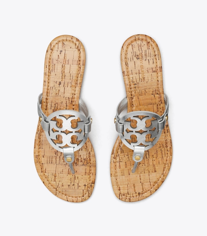 The iconic sandal with a cult following. Season after season, our Miller is loved for its timeless style and exceptional comfort. The classic design combines crinkled metallic leather and patent cork. It features a cushioned footbed with elevated hand-tack topstitching and a laser-cut logo with hand-painted edges fastened by gold rivets.