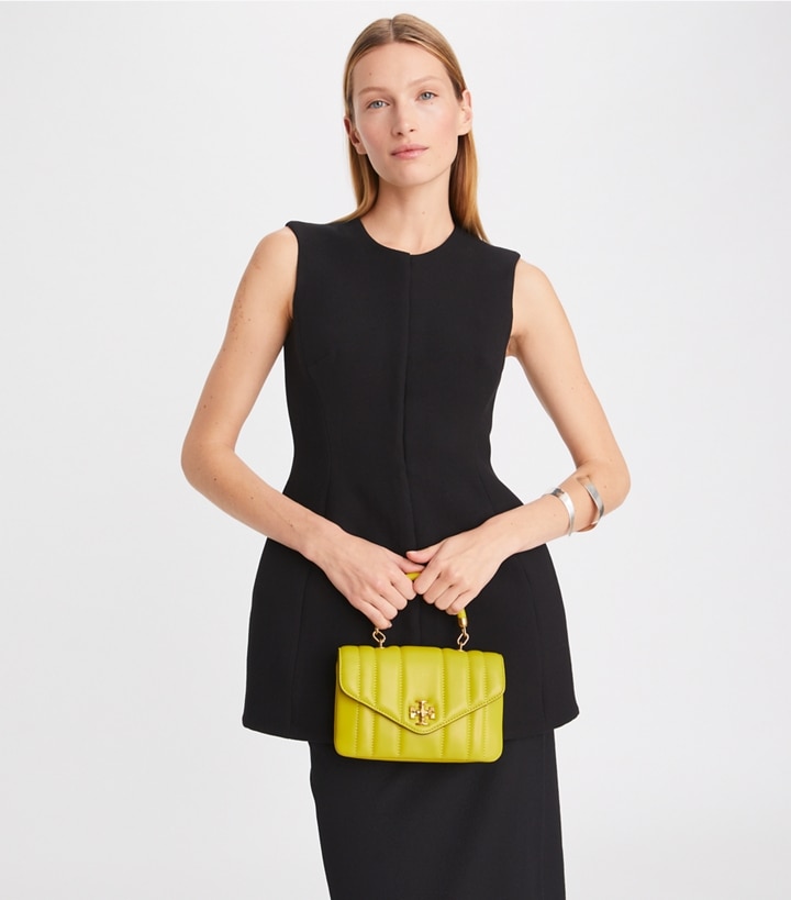 The new Mini Kira satchel is made of soft quilted leather, with a chic envelope edge and our Double T as a graphic turn-lock hardware. Carry it by the tubular top handle or with the chain-accented shoulder strap.
