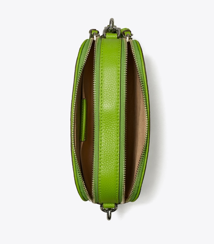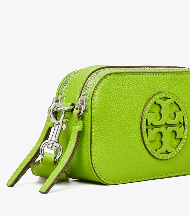 A new shape from our signature collection. The Mini Miller Crossbody Bag is crafted in soft pebbled leather with two zippered compartments and a laser-cut Double T. Wear it with or without the removable webbing strap.