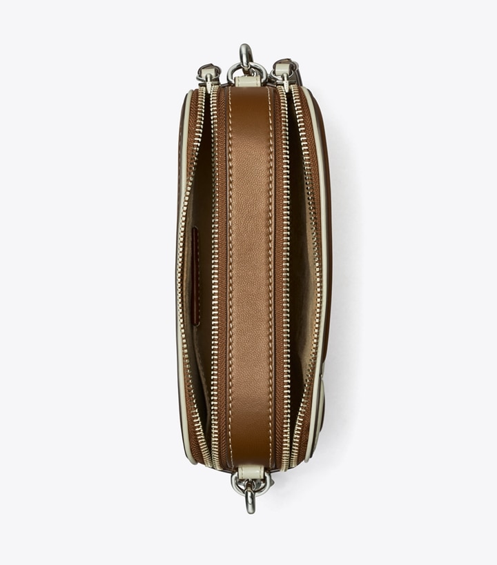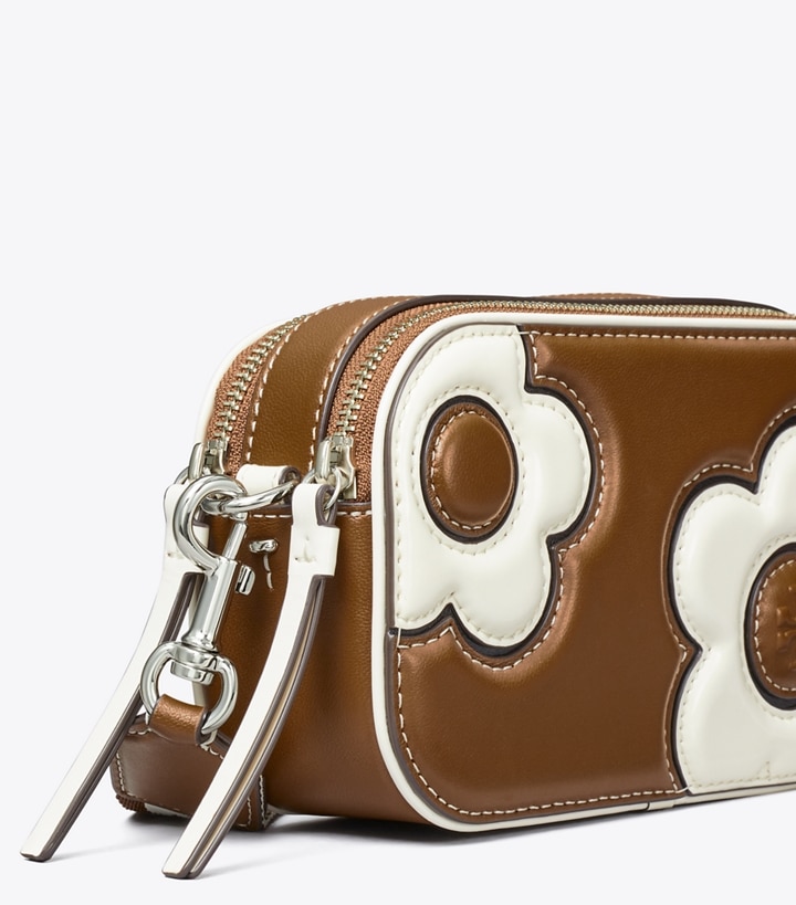 A new shape from our signature collection. The Mini Miller Crossbody Bag is crafted in soft napa leather with patent leather floral appliques and two zippered compartments. Wear it with or without the removable webbing strap.
