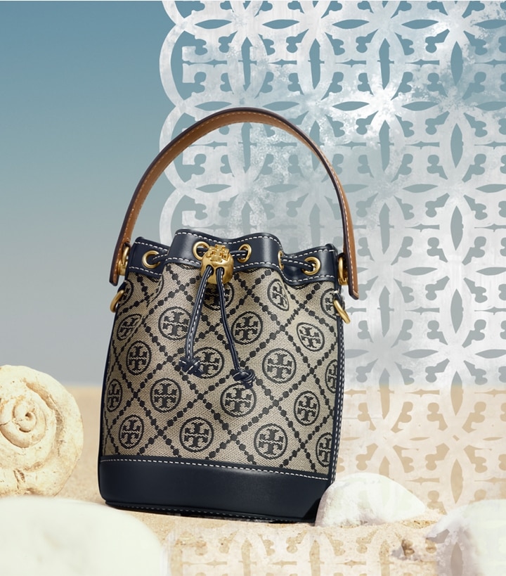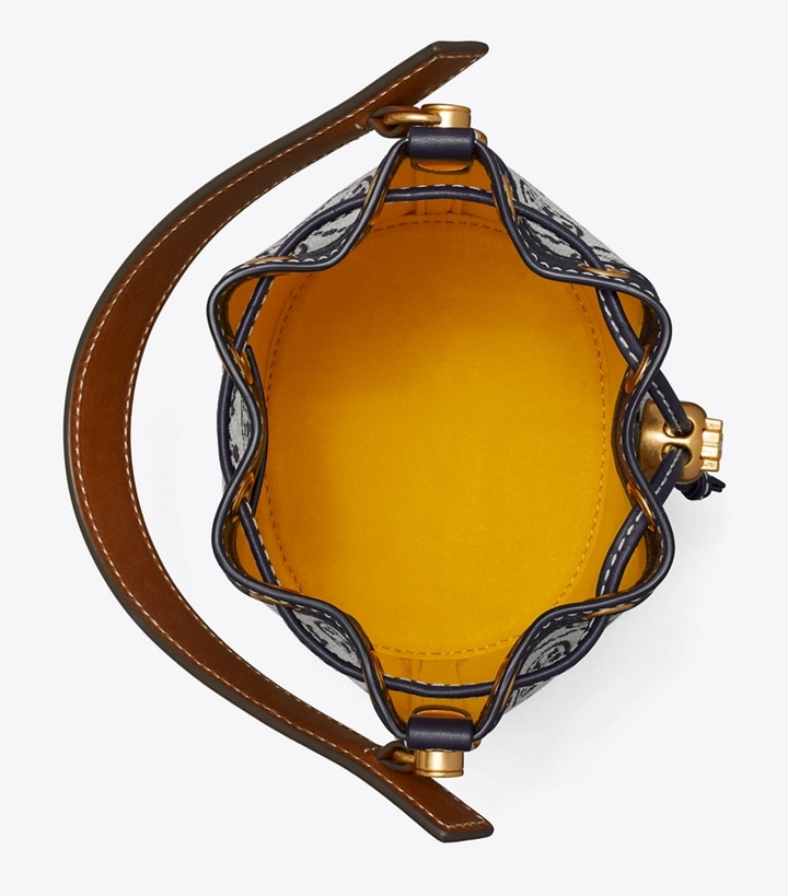 The mini bucket bag closes with drawstrings, secured by our gold Double T cord stopper. Worn crossbody, the top handle falls naturally. Every detail is considered, with special attention to function and versatility.