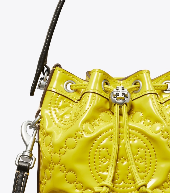 • Mini T Monogram Embroidered Patent Bucket Bag