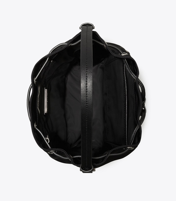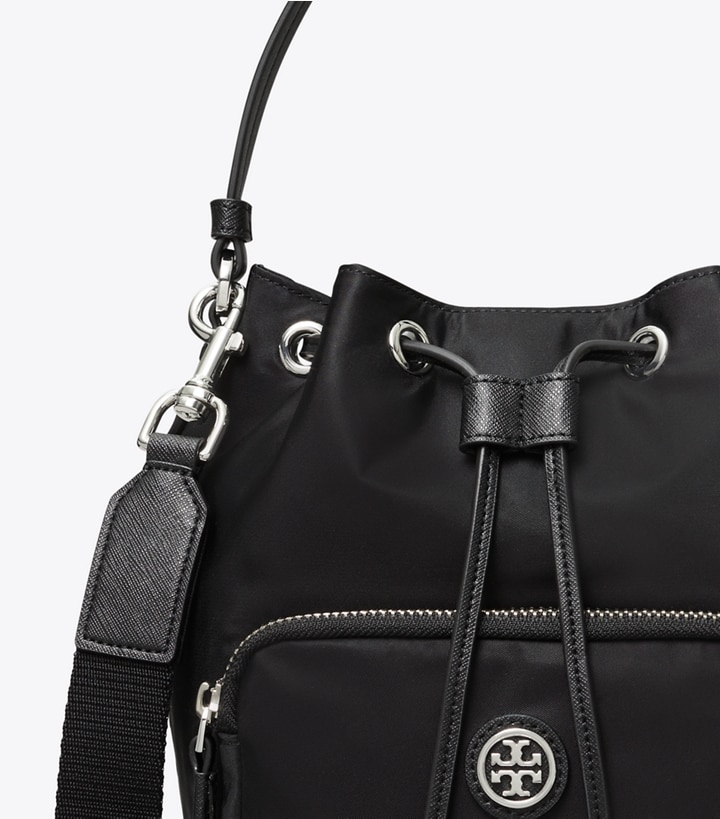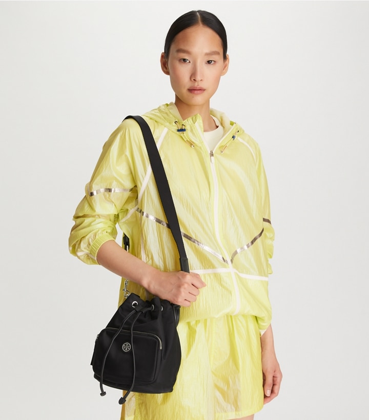A '90s classic revisited. Ultralight and great for every day and travel, the Virginia Bucket Bag is made of durable nylon. Soft and unstructured, with various pockets inside and out, and a comfortable webbing strap.?