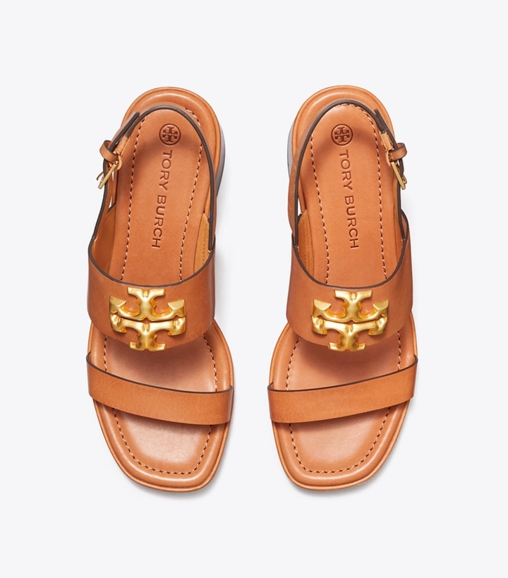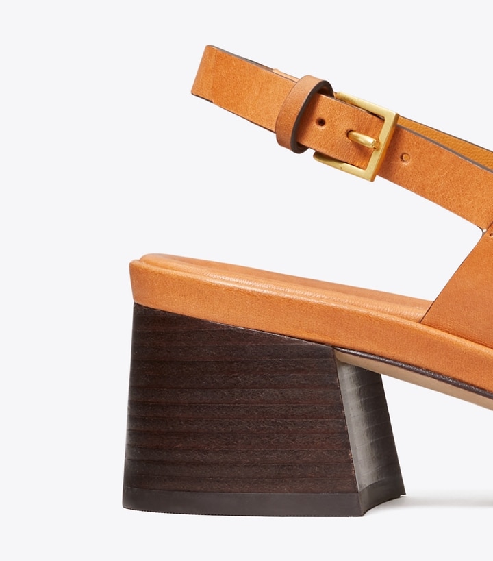 Signature hardware, scaled-up in sculptural brass. Our Eleanor Heel Sandal is easy and polished, with a block heel and adjustable strap for comfort. Wear it day to evening, with feminine dresses or menswear-inspired suits. ?