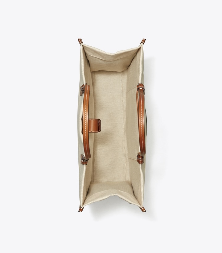 Our lightweight tote with a logo patch. The Ella is made of durable canvas with leather details and interior pockets, versatile, classic and beautifully constructed with artisanal craftsmanship. Narrow straps are knotted, allowing them to lie flat and comfortably on the shoulder. Ideal for every day and getaways, it has room for all your essentials.?