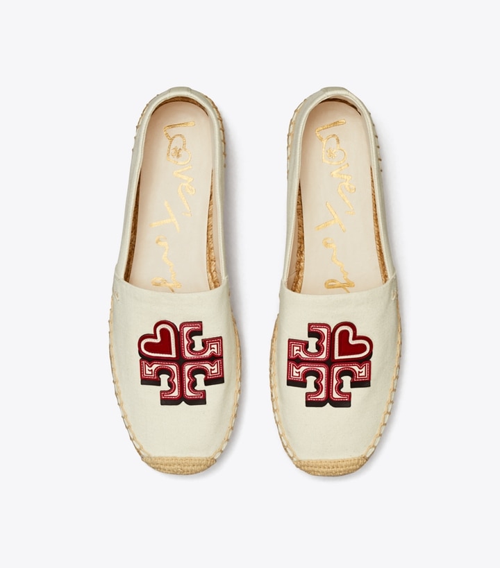 Part of our limited-edition Chinese Valentine's Day collection: an exclusive graphic heart set within our Double T. The quintessential warm-weather shoe, our espadrille is made of classic canvas trimmed in fine leather, with a jute platform detailed with stitching.