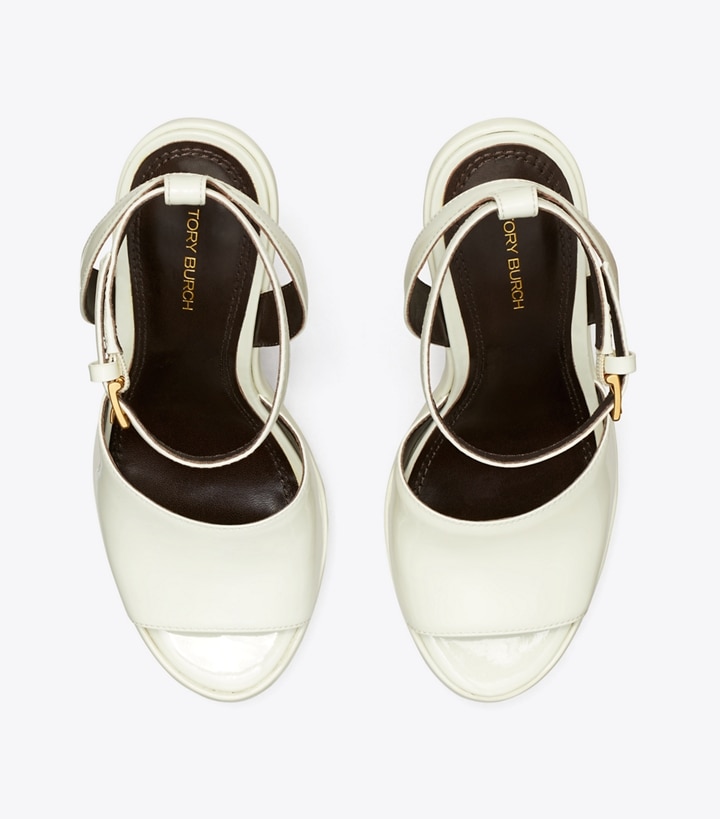 Chic and comfortable, the Platform Sandal is made with sleek patent leather contrasted by textural jute. Finished with an adjustable ankle strap and padded footbed, it's a perfect heel for warmer weather.