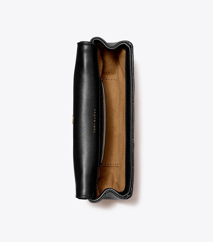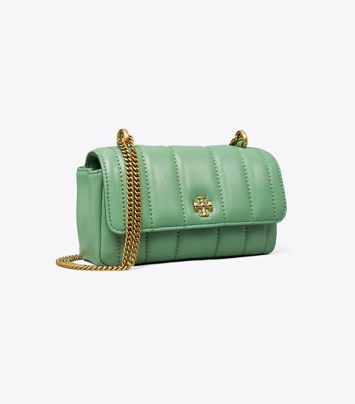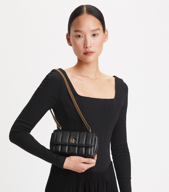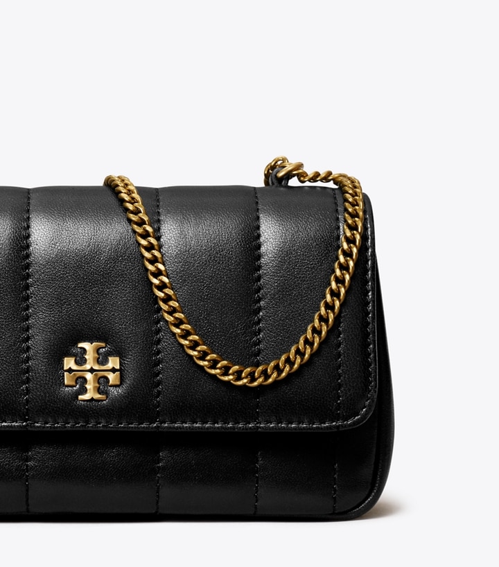 Our mini Kira shoulder bag with beveled hardware. The linear quilting and luxurious leather recall the plush interiors of classic cars. Enduringly chic, it has a chain-accented crossbody strap.