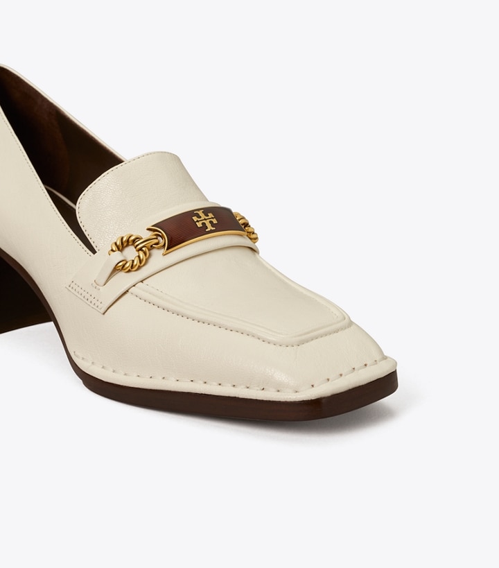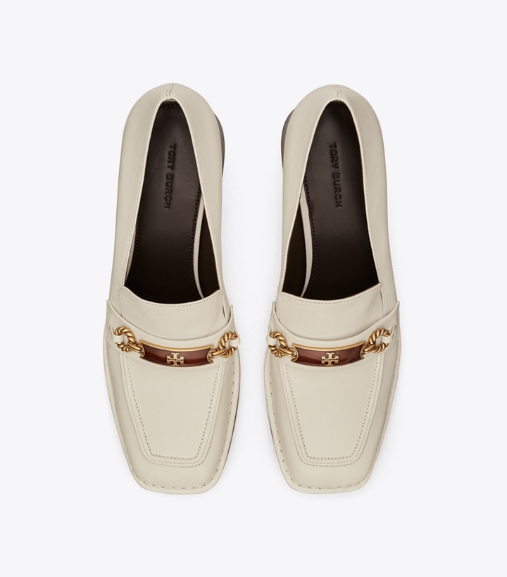 Our classic loafer with the patina of the Seventies. The Perrine Loafer is a masculine silhouette shaped by feminine details. Its vintage mood is underscored by a flared heel and signature hardware, an enamel Double T plate with braided brass rings. Traditional San Crispino construction in soft crackled leather deepens its character over time.