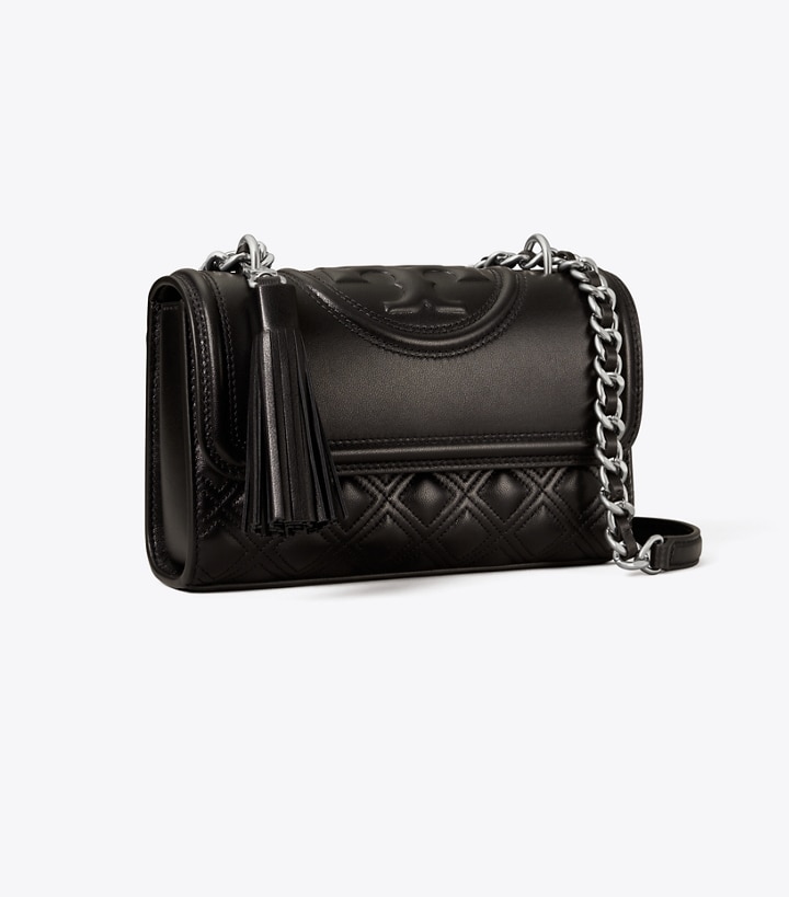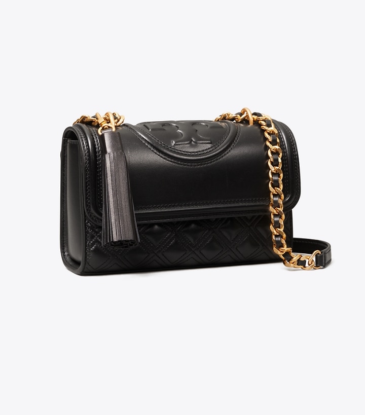 Bold diamond quilting and smooth leather, with refined details and construction. Our iconic Double T in embossed bombe. The adjustable strap, woven with brushed gold chain, has a double shoulder guard and can also be carried crossbody.