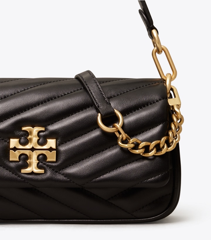 The Small Kira Flap Shoulder Bag is a compact day-to-evening bag that fits perfectly under the arm. Made of soft chevron-quilted leather, it has a removable crossbody chain strap and beveled Double T hardware.