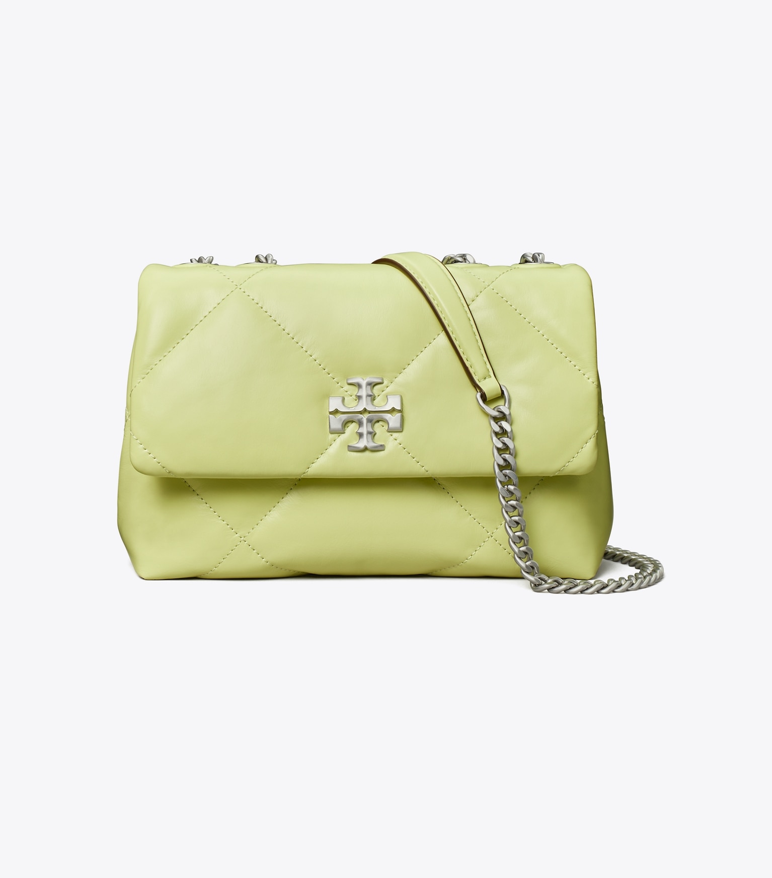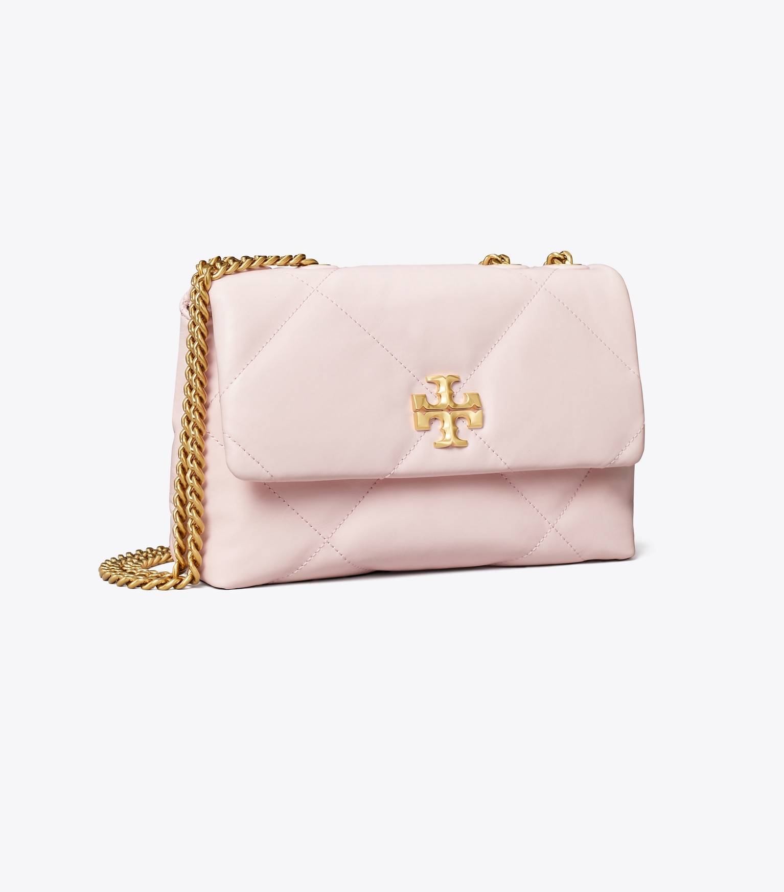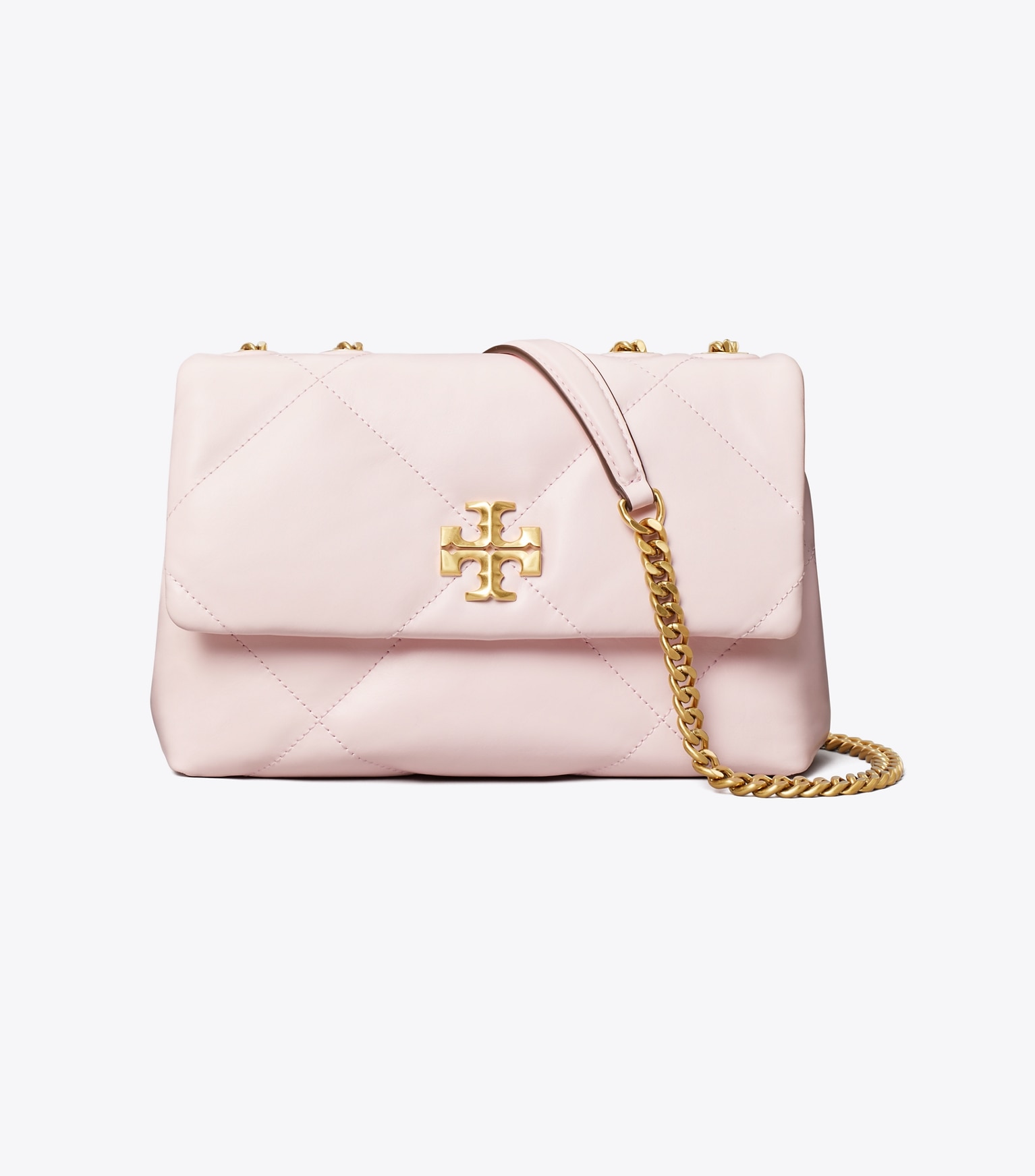 Introducing the Spring ’24 Small Kira Diamond Quilt Convertible Shoulder Bag. Irresistibly soft with blown-up diamond quilting. Pillowy dimension on a classic shape, punctuated by beveled Double T hardware. Wear the curb chain strap doubled over the shoulder or long and crossbody.
