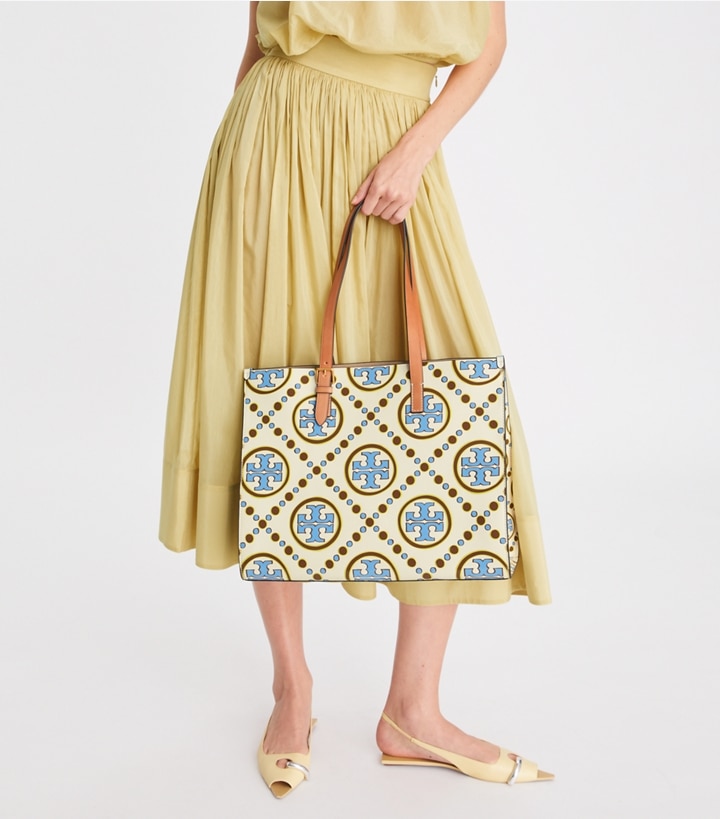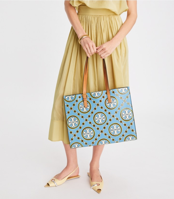 • T Monogram Contrast Embossed Tote I-J-E