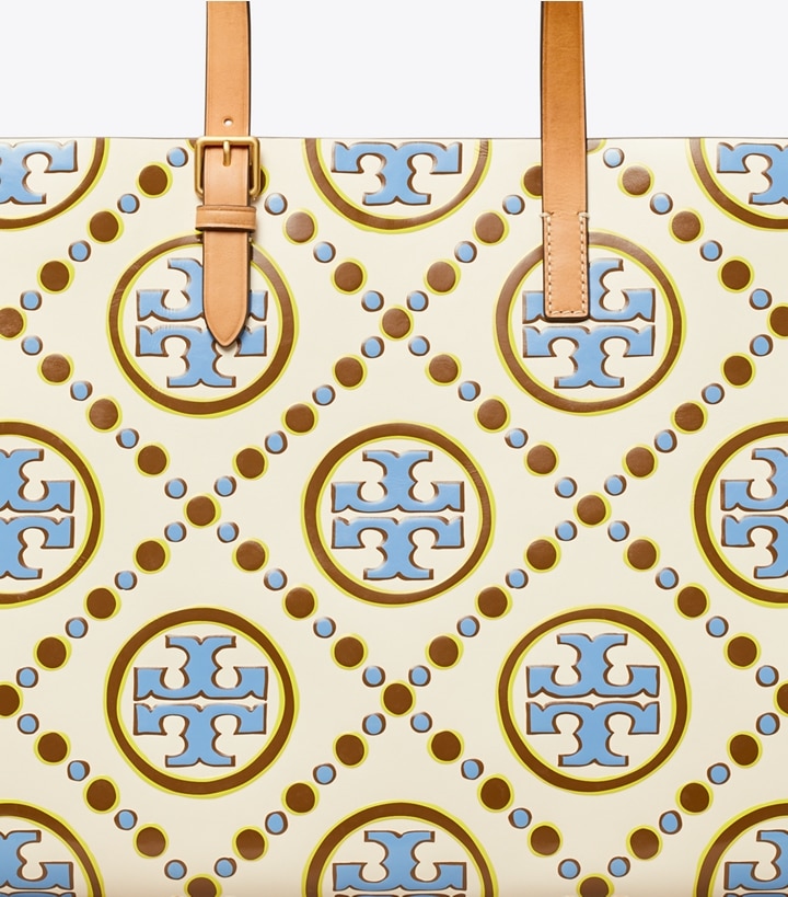 T Monogram Contrast Embossed Tote I-J-E