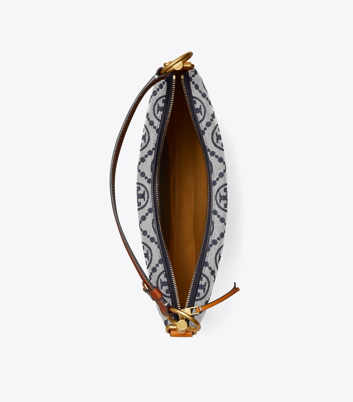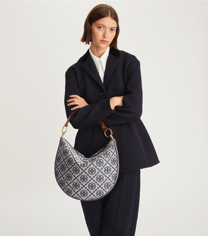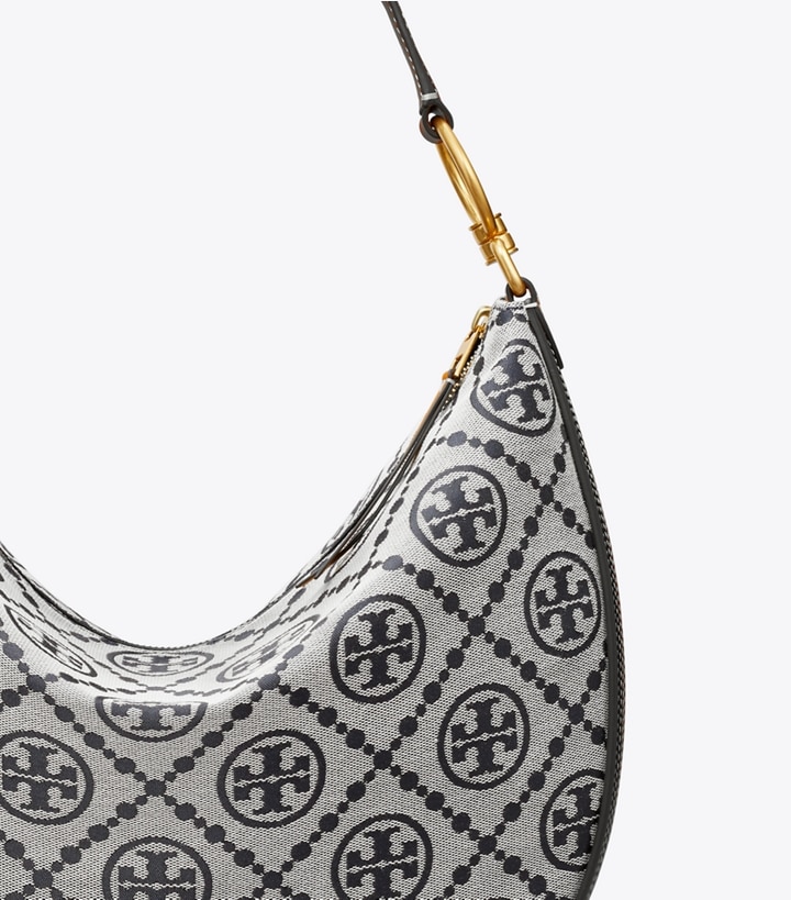 Our iconic monogram evolves with a new sense of scale, texture and depth. Made of woven jacquard, the slim crescent is a unique expression of creativity and craftsmanship. Lined in soft microsuede, the interior has a pocket for organization. Wear it tucked under the arm or crossbody. Every detail is considered, with special attention to function and versatility.