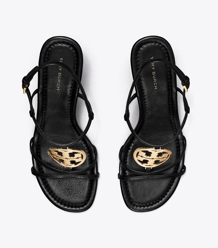 The Capri Miller Wedge Sandal combines refined style with everyday comfort. Crafted in leather with a lacquered heel and cushioned footbed, the elegant sandal is detailed with an oversized Double T brass coin.