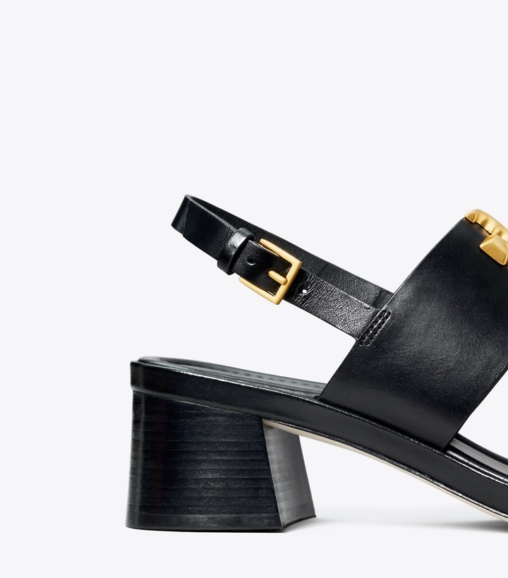 Signature hardware, scaled-up and sculptural. Our Eleanor Heel Sandal is easy and polished, with a block heel and adjustable ankle strap for comfort. Dress it up for the office or down with jeans.