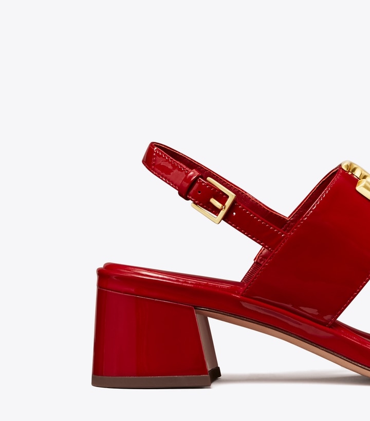 Signature hardware, scaled-up and sculptural. Our Eleanor Heel Sandal is easy and polished, with a block heel and adjustable strap for comfort. Dress it up for the office or down with jeans.