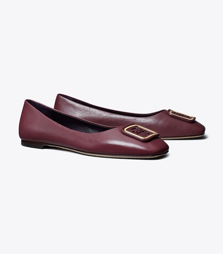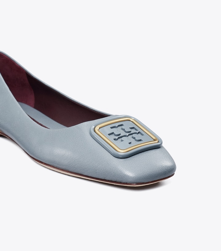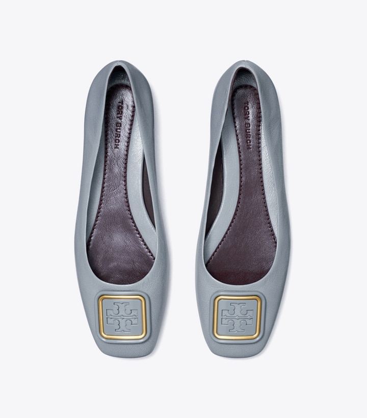 The Georgia Ballet with a new dual-tone logo. A square toe and square hardware in super-soft leather. It is designed with a flattering high vamp and a cushioned insole for comfort.