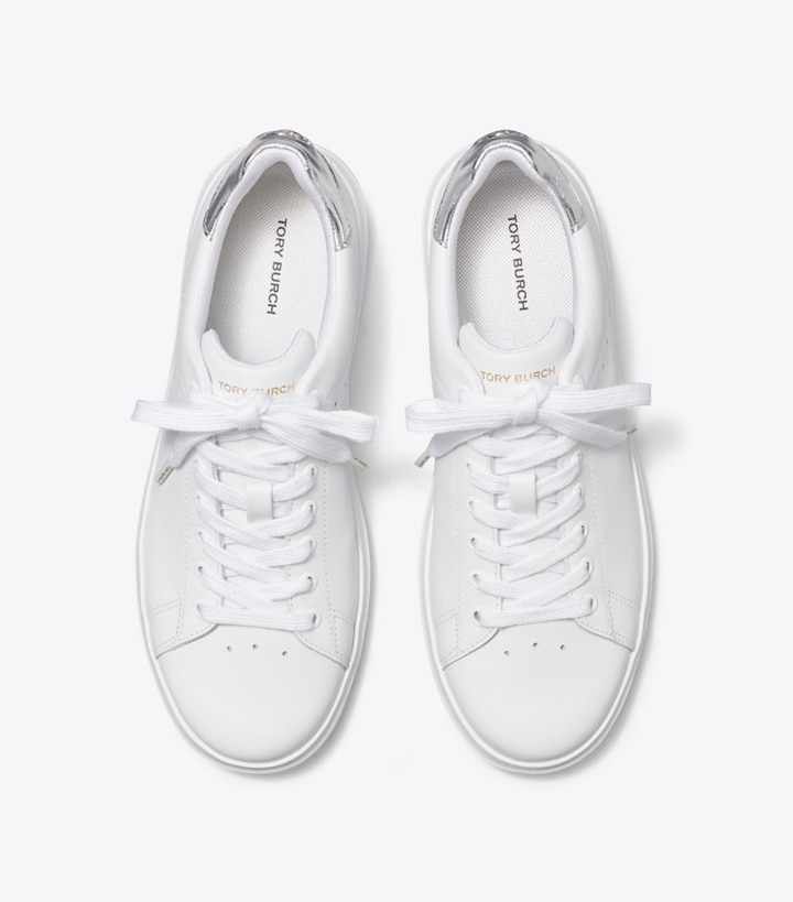 A classic court sneaker, updated for superior comfort, fit and flexibility. The Howell has the look of a Seventies tennis shoe, with our signature design elements. Exceptionally lightweight, the layered sole is made from a soft cushioned midsole and a performance outsole that is extremely flexible, with high-rebound EVA for traction. Our iconic Double T, in plated brass, is embedded into the padded-leather heel tab.