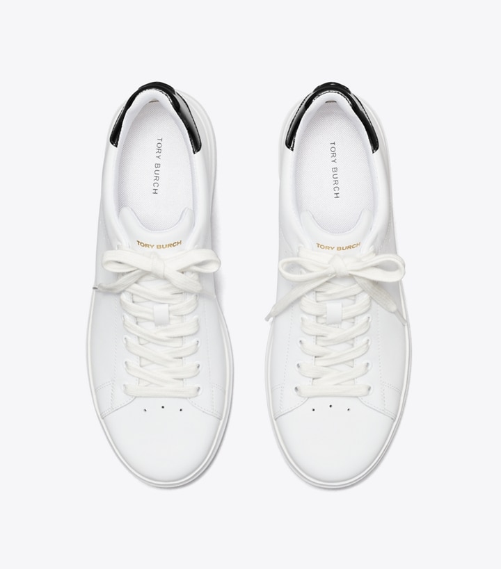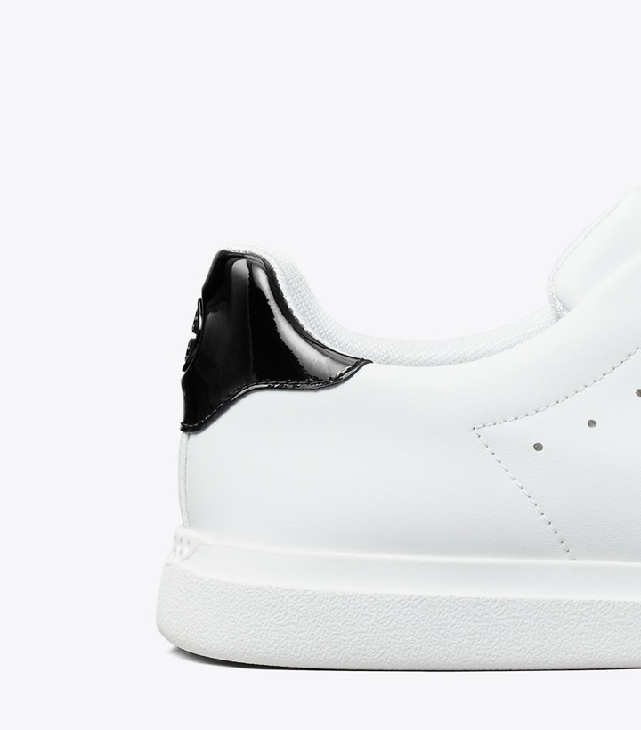 A classic court sneaker, updated for superior comfort, fit and flexibility. The Howell has the look of a Seventies tennis shoe, with our signature design elements. Exceptionally lightweight, the layered sole is made from a soft cushioned midsole and a performance outsole that is extremely flexible, with high-rebound EVA for traction. Our iconic Double T, in plated brass, is embedded into the padded patent-leather heel tab.