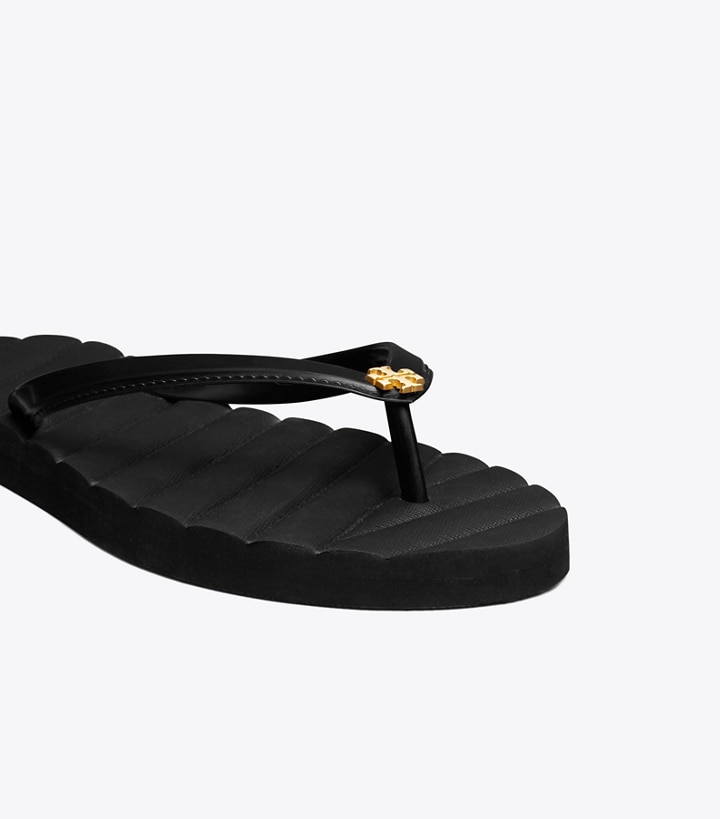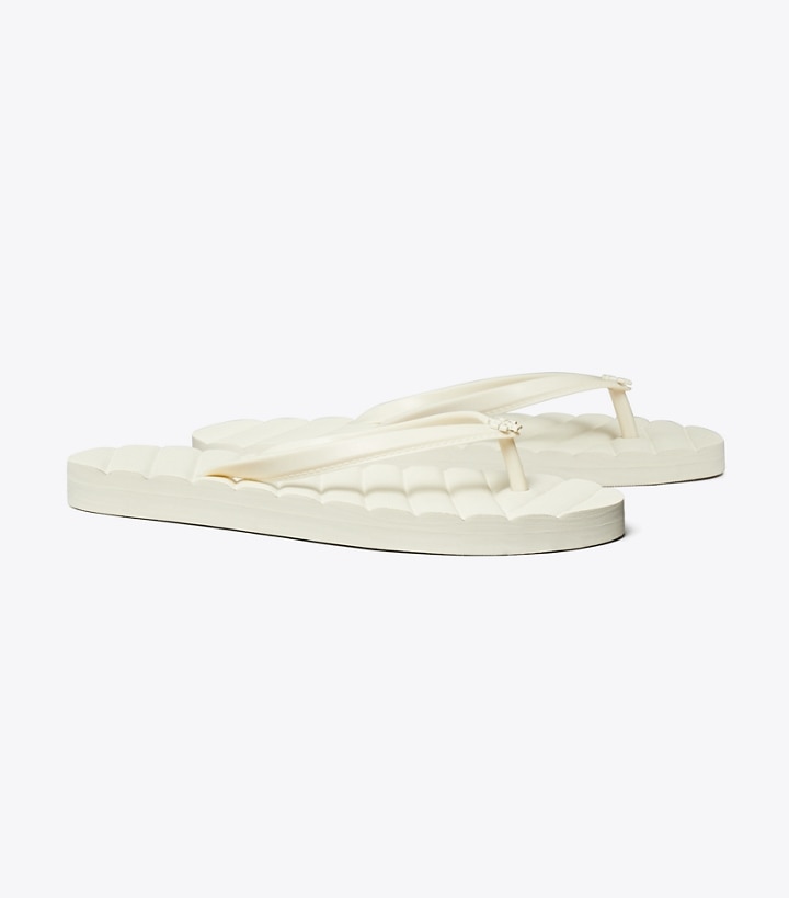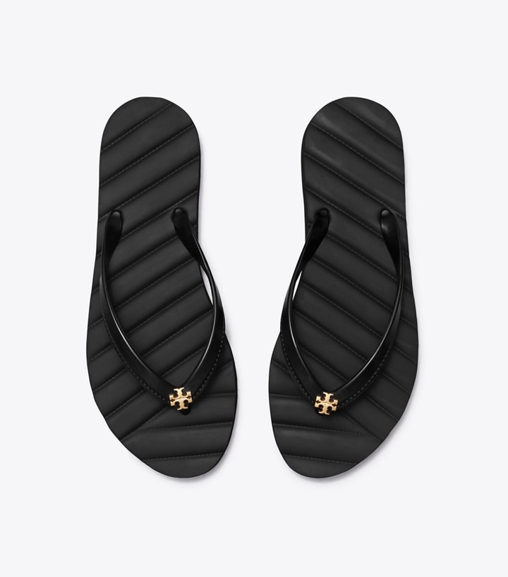 An elevated take on a warm-weather staple. Our Kira Flip Flop is thoughtfully designed with natural rubber sourced from certified sustainable forests in Brazil. It is finished with a chevron-quilted footbed and our Double T logo.