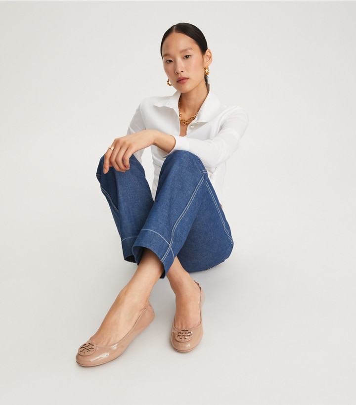 Fold. Pack. Go. Our Minnie Travel Ballet is flexible and lightweight, defined by its unique ability to bend in half. Crafted in patent leather and detailed with a tonal Double T, the classic silhouette features a cushioned footbed and slip-resistant rubber sole. A stitch-and-turn construction refines the seams and creates a subtle binding around the edge. Easily carry this ultra-comfortable flat in a tote or handbag.