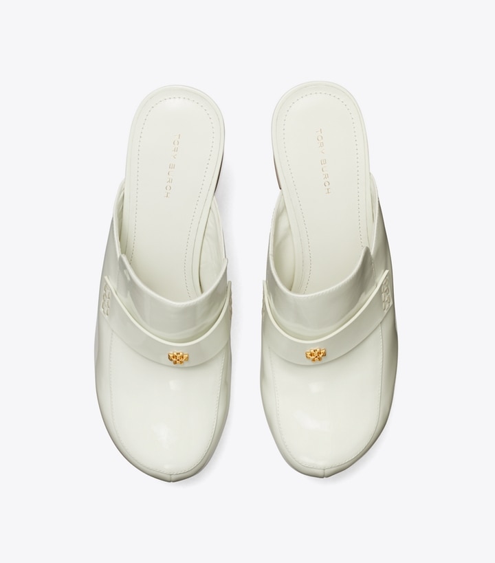 The Seventies clog, elevated. Crafted from soft patent leather, our mule is set on a classic wooden platform. A cushioned footbed ensures comfort day or evening.