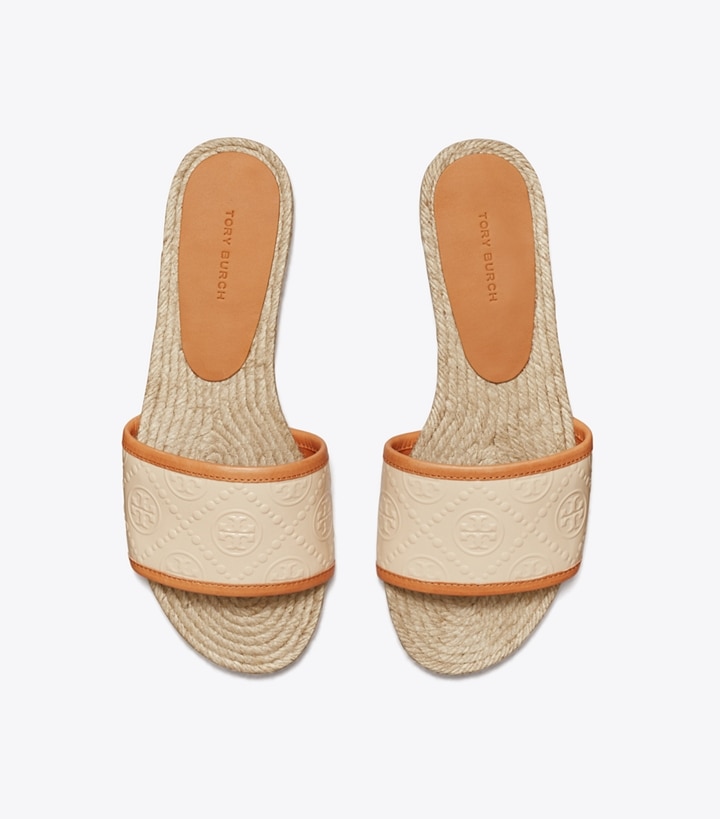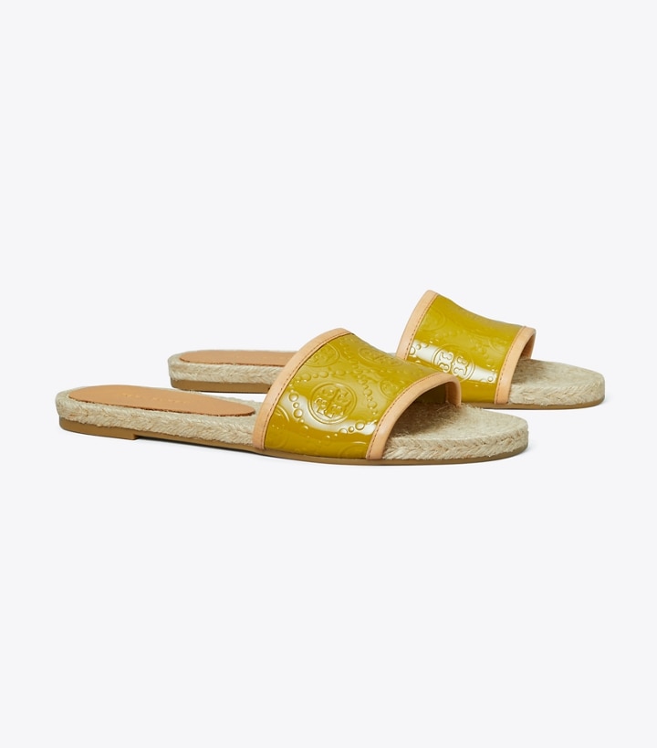 Meticulously crafted in embossed patent leather, the espadrille slide is trimmed in fine leather, with a jute sole stitched by hand.