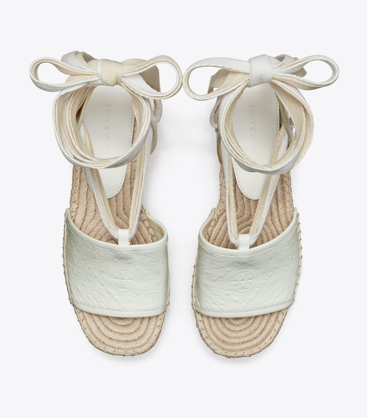 Meticulously crafted in embossed patent leather, the espadrille wedge has a jute-wrapped platform sole, stitched by hand. Cotton ankle straps ensure a secure fit.