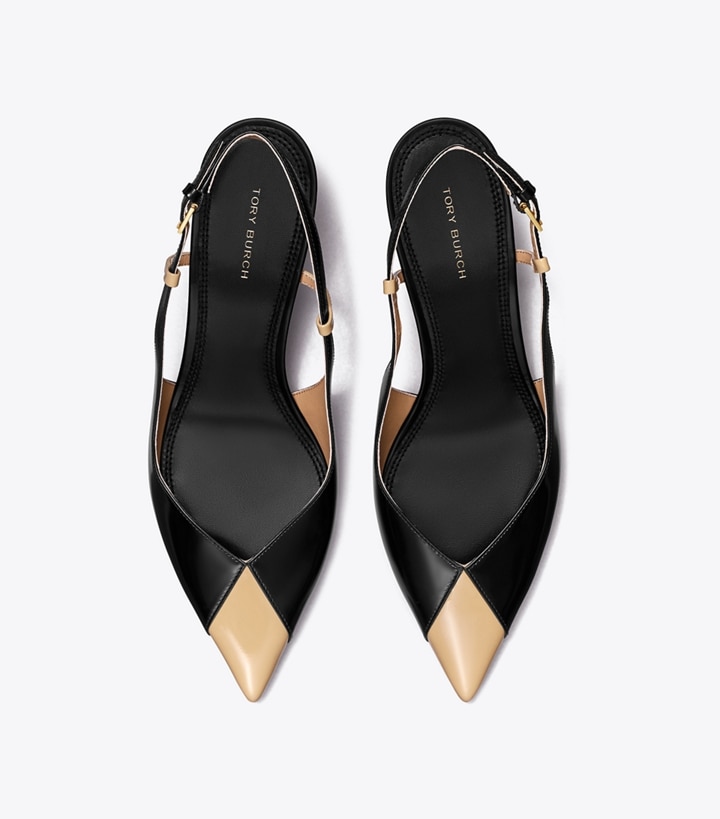 The shape of elegance. Our Triangle Slingback is an instant classic with a sharp, pointed toe and buckled ankle strap. Wear it to complement the season's clean, minimalist lines.