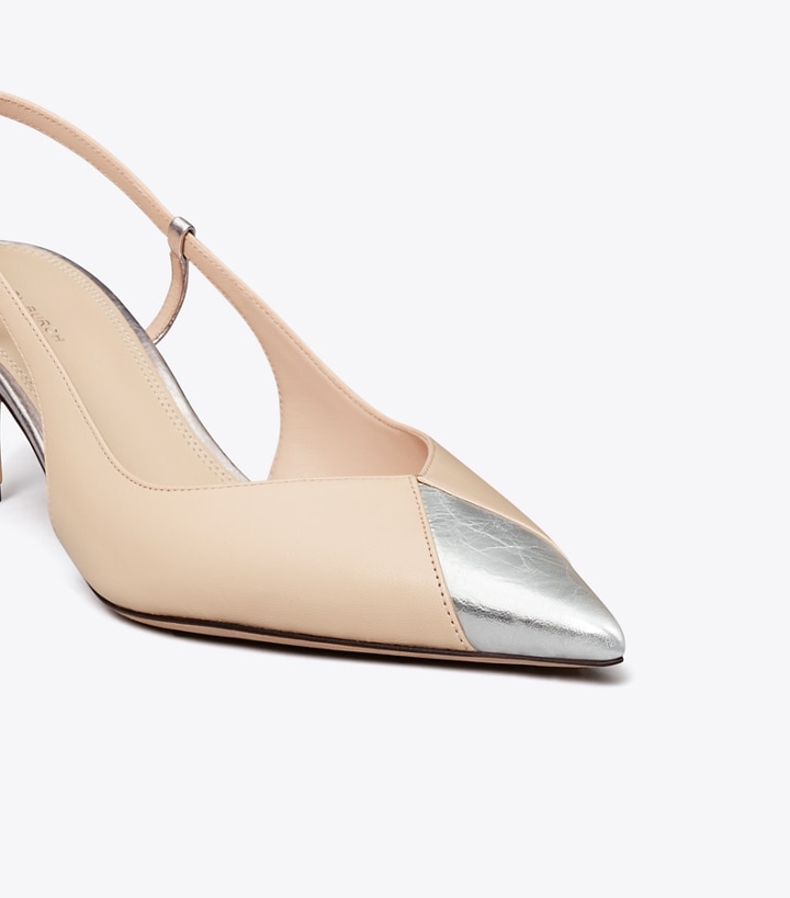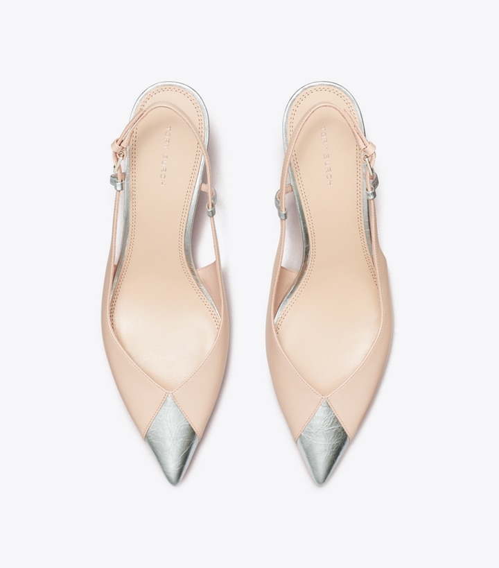 The shape of elegance. Our Triangle Slingback is an instant classic with a sharp, pointed toe and buckled ankle strap. Wear it to complement the season's clean, minimalist lines.